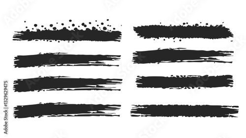set of black grunge brush stroke textures on white. dirty paint pattern collection