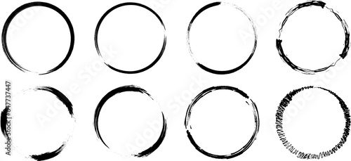 Set of black grunge circles frames. PNG