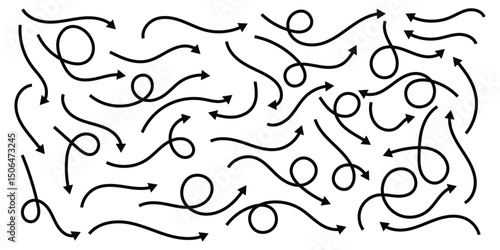 Set of black hand drawn arrows isolated on white background. Vector illustration. EPS 10
