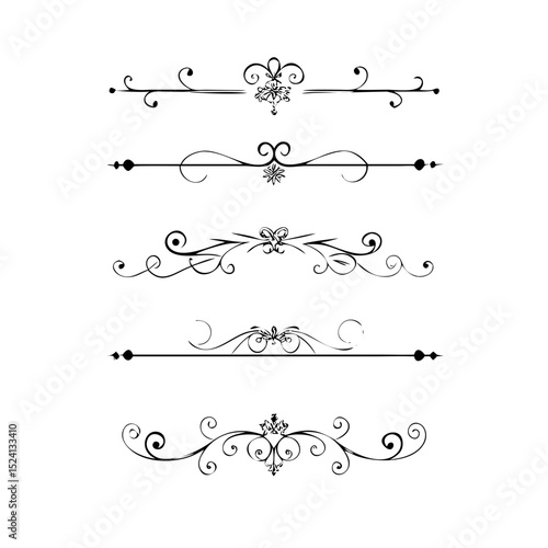 Set of Black Hand Drawn Rustic Doodle Design Elements. Decorative Floral Swirls, Scrolls, Text Frames, Dividers. Vintage Vector Illustration.