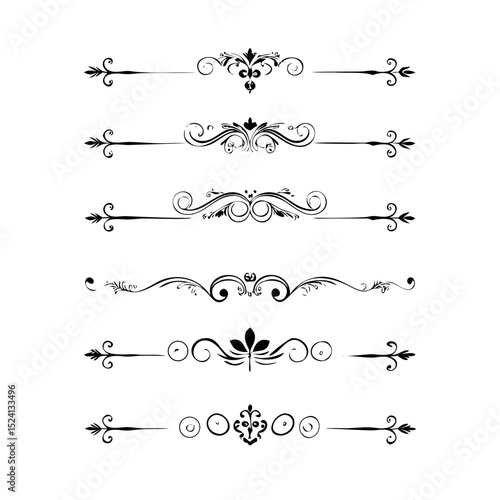 Set of Black Hand Drawn Rustic Doodle Design Elements. Decorative Floral Swirls, Scrolls, Text Frames, Dividers. Vintage Vector Illustration.
