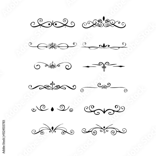 Set of Black Hand Drawn Rustic Doodle Design Elements. Decorative Floral Swirls, Scrolls, Text Frames, Dividers. Vintage Vector Illustration.