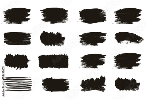 Set of black paint, ink brush strokes
