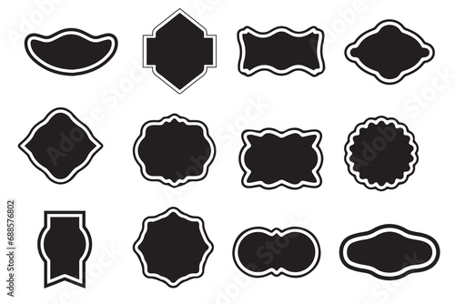 Set of black retro vintage sticker frames and labels. Decorative label and old retro shape collection. Vector illustration
