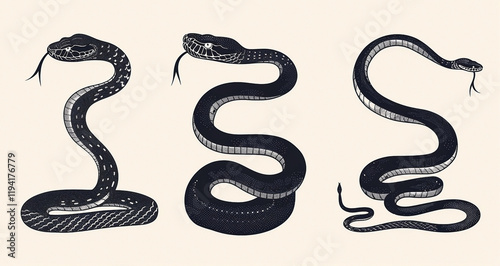 Set of Black Snake Silhouettes Displayed on White Backdrop