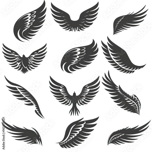 Set of black wings icons. Wings badges. Collection wings badges. Vector illustration