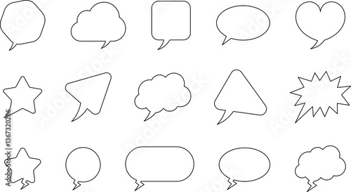 Set of blank white speech bubble in flat design, chatting box, message box icon. Balloon doodle style of thinking sign symbol. Speech bubble isolated on background.