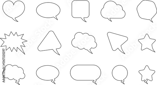 Set of blank white speech bubble in flat design, chatting box, message box icon. Balloon doodle style of thinking sign symbol. Speech bubble isolated on background.