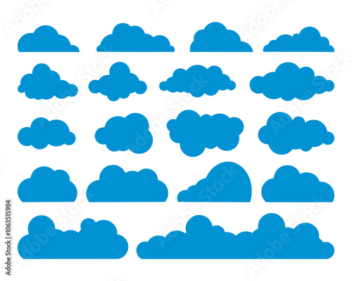 Set of blue clouds. Big clouds. Set for cartoon. Vector illustration