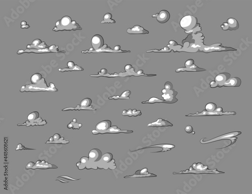 Set of blue sky, clouds isolated. Cloud icon, cloud shape. Collection of different clouds. Graphic element vector. Vector design element in cartoon style
