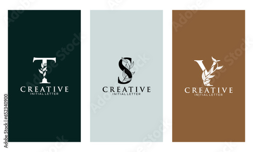 Set of Botanical Minimalistic Initial Letter T, S, Y Logo Vector Template