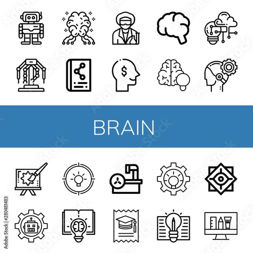 Set of brain icons such as Robotics, AI, Scientific, Scientist, Thinking, Brain, Creativity, Creative, Robot, Idea, Magnetic resonance, College, Philosophy , brain