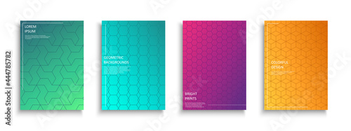 Set of bright colorful creative covers, templates, posters, placards, brochures, banners, flyers and etc. Ornamental geometric backgrounds - vibrant gradient design