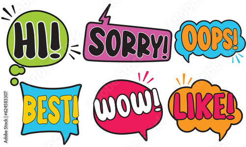 Set of bright cool and dynamic comic speech bubbles for different emotions and sound effects. comic bubble speech.