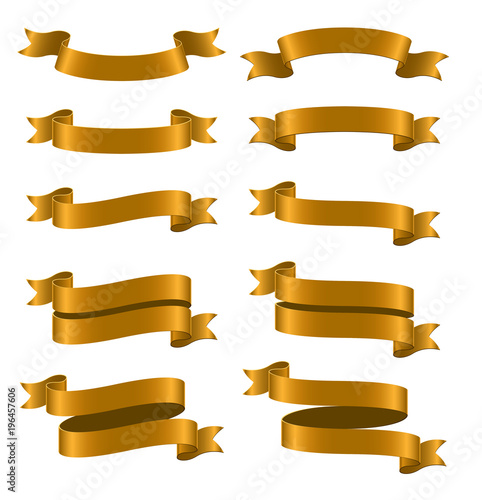 Set of brown ribbon banners on white background