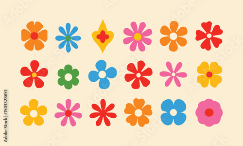 Set of brutal geometric playful flower star shapes in minimalistic retro . Brutalist basic figures. design elements.