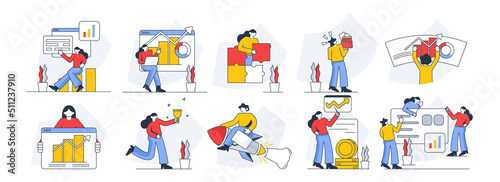 Set Of Business Startup And Progress Concept In Flat Style.