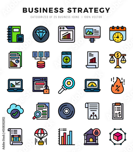Set of Business Strategy Icons. Simple line art style icons pack.