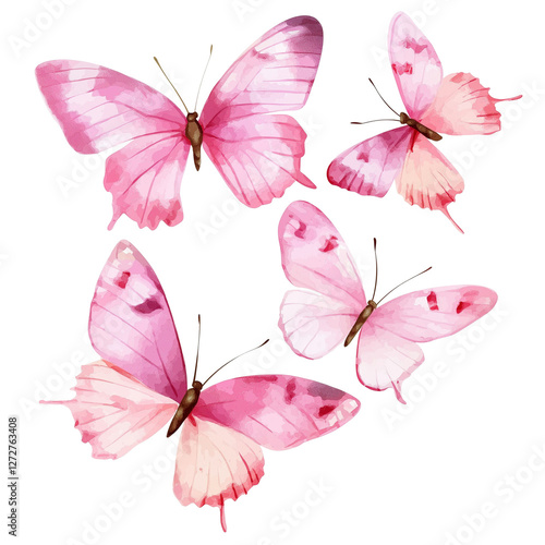 set of butterflies isolated on transparent white background, clipping path