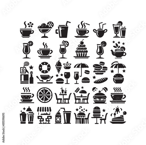 Set of cafe icons, restaurant icon, food and drink vector illustration icon design