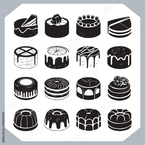 Set of cake silhouette, symbol of the cake holiday, birthday, anniversary, wedding, festive, Birthday cake icons set silhouette vector in white background