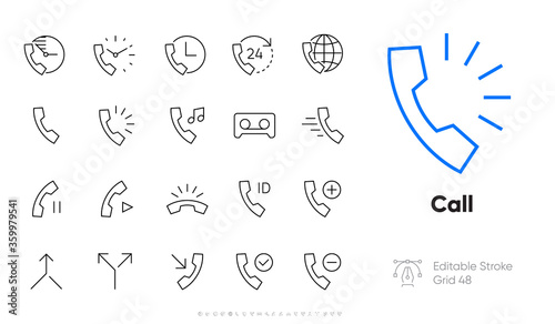 Set of Call and Phone Vector Pixel Perfect Line Icons