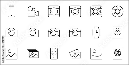 Set of Cameras and photo, vector line icons. Contains symbols of portraits and family photos and much more. Editable Stroke. 32x32 pixels