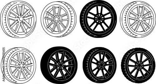 set of car wheel icon black