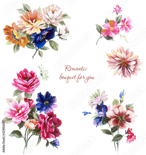 Set of card with flower rose, leaves. Wedding ornament concept. Floral poster, invite. Decorative greeting card or invitation design background