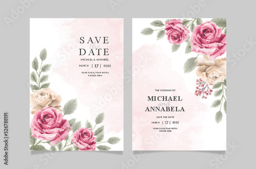 Set of card with pink flower rose and leaves. Wedding ornament concept. Floral poster invitation. Vector decorative greeting card or invitation design background