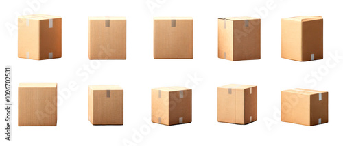 Set of Cardboard box arrangement for creative packaging solutions isolate on transparent background, cutout, png