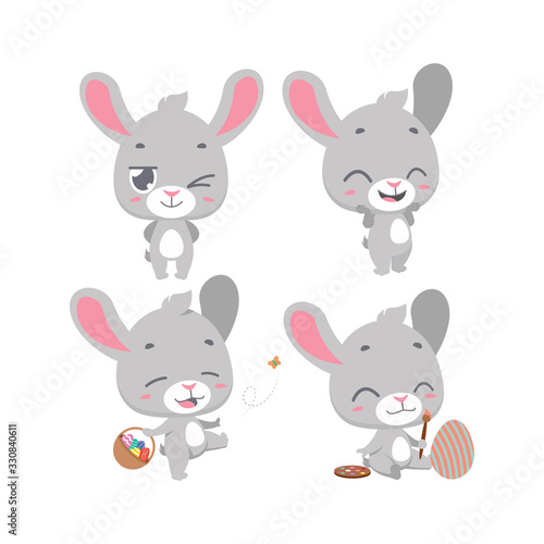 Set of cartoon bunny mascot poses