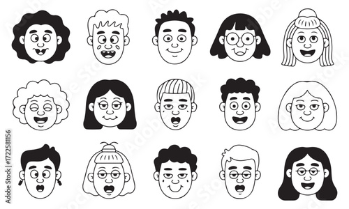 Set of Cartoon Smiling Faces Fool Vector Icons