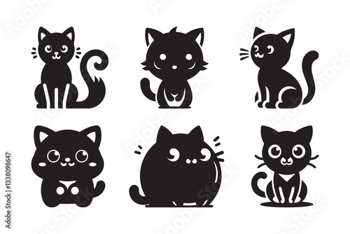 Set of cartoon style Cat Silhouette icon , isolated on a white background