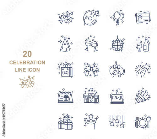 set of celebration icons, party, anniversary, congratulations, happy new year, birthday