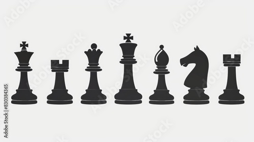Set of chess pieces on a plain white background. Suitable for strategy and competition concepts