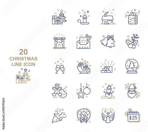 set of christmas thin line icons, winter, holiday, new year
