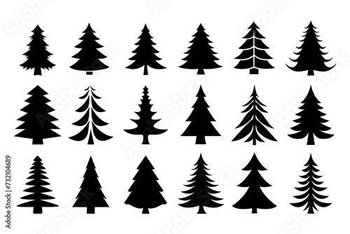 Set of Christmas trees icons. Black silhouettes, isolated on white background. Vector