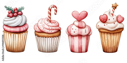 Set of Christmas watercolor elements on white background