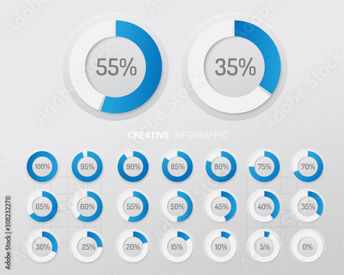 Set of circle percentage diagrams from 0 to 100 ready-to-use.