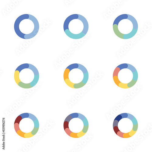 Set of circle pie charts. Financial analysis data 2,3,4,5,6,7,8,9,10 sections elements for business presentation, Vector Illustration