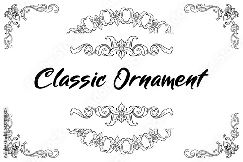 Set of Classic Flourish Ornament Frame Vintage Border Art Decorative