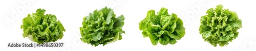 set of Close-up view of three vibrant green heads of lettuce. isolated on transparent background