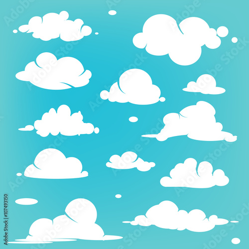 Set of clouds on blue sky. Collection of cloud icon. Vector clouds for logo, web and print.