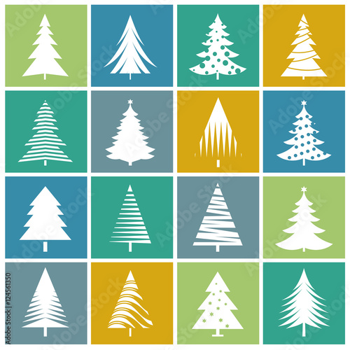 Set of Color Christmas Trees. Vector Illustrations.