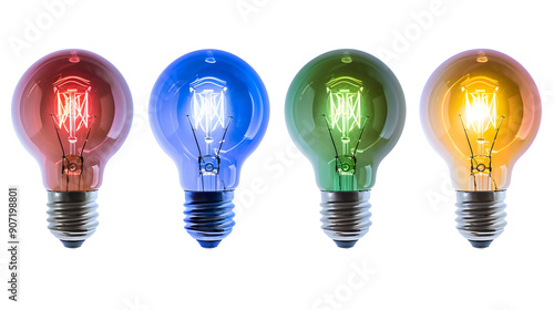 Set of color led light bulb Isolated on Transparent Background