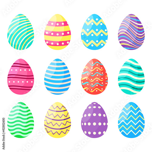 Set of colored Easter eggs. Vector illustration collection of bright eggs for Easter