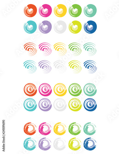 Set of colorful circle shapes ink and brush