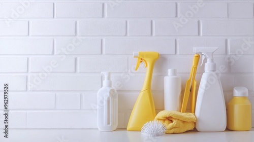 Set of Colorful cleaning products in bathroom,Cleaning product tool equipments, concept of housekeeping, professional clean service,housework kit supplies,hardware store,cleaning service.