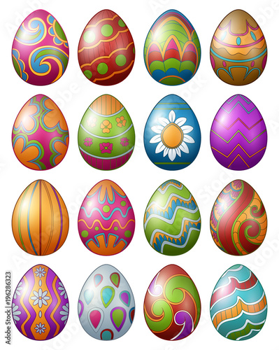 Set of colorful decorated easter eggs isolated on white background